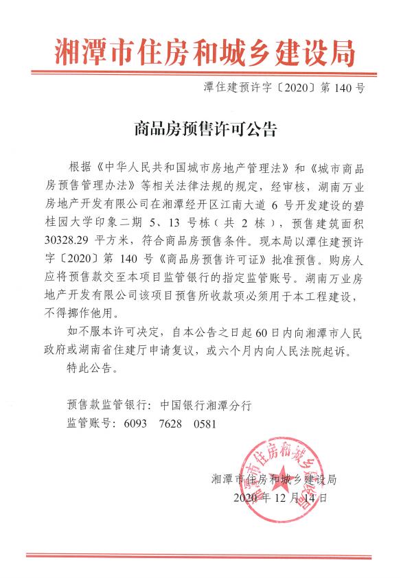 關于碧桂園大學印象二期5、13號棟(共2棟)預售許可公告