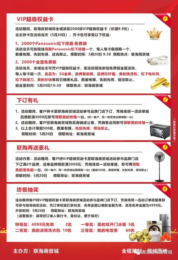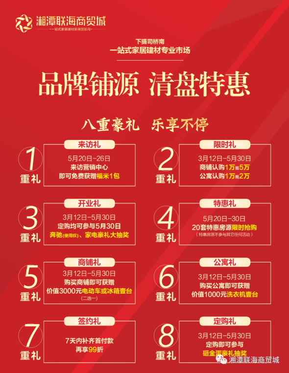 3月12日—5月30日,定購商鋪、公寓均可參與5月30日開業(yè)大抽獎:奔馳(使用權)、品牌家電,抽獎抽到手軟,豐厚豪禮送不停!