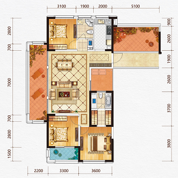 三房兩廳兩衛(wèi)+入戶花園