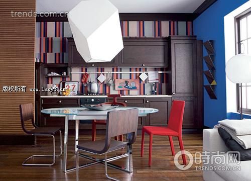 不同造型與材質(zhì)的餐椅在一起,因為照顧到了色彩與背景墻的協(xié)調(diào)一致,在視覺上形成了和諧統(tǒng)一的整體。