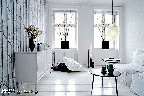 整體效果:壁紙的色彩十分廣泛,不同材質的壁紙可以產生不同的色彩氛圍和質感,紙基壁紙和PVC壁紙比較普遍,色彩眾多,容易清潔;而織物壁紙和植物壁紙在立體感的塑造上比紙基壁紙要略勝一籌,但是清潔起來比較麻煩,凹凸紋理的細節需要在保養上下一番工夫;其它的壁紙,如金屬壁紙、熒光壁紙可以產生一些特殊的效果來裝點房間。和絢麗色彩相映成趣的當然是壁紙上的圖案,最常見的使用方法是在整體氛圍確定后,以局部點綴一些帶有花紋的裝飾圖案,把人的視覺重點自然地過渡到帶有圖案的墻面上,令鮮亮的色彩和各種圖案完美地融合在一起。