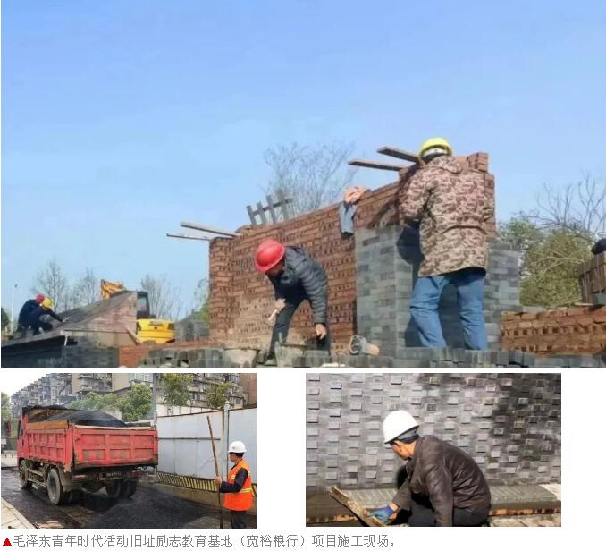 訊 門窗涂刷、石材鋪裝,青磚飾面、土方回填,工人忙碌地處理每一個細節,工程車輛在場內來回穿梭,這是毛澤東青年時代活動舊址勵志教育基地(寬裕糧行)火熱的施工一線。