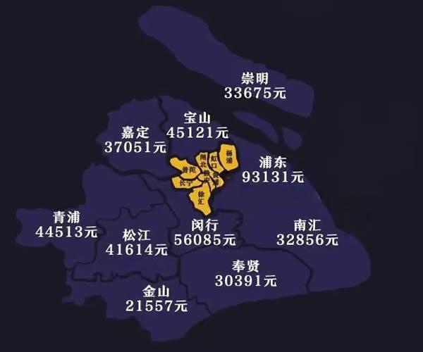 上海從“寧要浦西一張床,不要浦東一間房”的印象到浦東新區(qū)的逐步崛起,1990年到2020年浦東GDP翻了219倍,浦西僅有35倍,其內(nèi)環(huán)內(nèi)濱江一線住宅均價更是15萬/㎡+,未來價值不可估量。