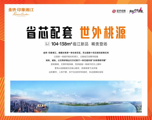 臻有,就是價值。對于城市精英來說,不動產(chǎn)名單上少了這一段江景,都會留下遺憾。長株潭核芯地段、一線濱江資源、優(yōu)秀高端品質,金僑·印象湘江以多重珍罕價值疊加,成就湘潭宜居住宅的硬通貨、城市核芯濱江房的藏品,真正賣一席少一席,典藏好房不容錯過。
