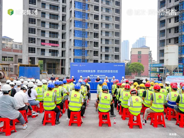 城發(fā)集團(tuán)工程管理部、安全環(huán)保部,五礦二十三冶房建公司、湘潭市鴻杰開發(fā)建設(shè)有限公司(以下簡稱“鴻杰公司”)相關(guān)負(fù)責(zé)人出席,項(xiàng)目總包單位、監(jiān)理單位、各專業(yè)分包項(xiàng)目負(fù)責(zé)人及工人代表共計(jì)100多人參加活動(dòng)。