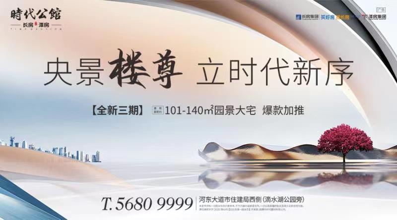 長房潭房·時代公館全新三期[央景樓尊]立時代新序,19#約101-140㎡園景大宅,爆款加推。